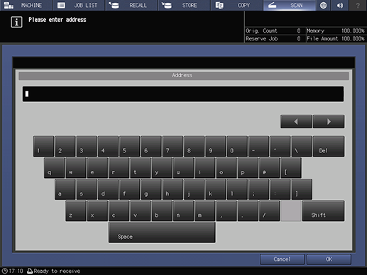 Touch panel - [SCAN] - [E-mail] - [Register/Edit] - [Add] - [Address] | |||