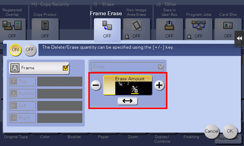 3. Tap [Application], select [Non-Image Area Erase], then select [ON].