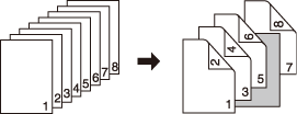 [2->1] | Blank paper is inserted after the 5th page (9th and 10th pages) of a 2-sided original was simplex-copied. Blank paper cannot be inserted after an odd-numbered copy page. ![]() |