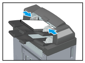 Copies are stapled parallel to the paper at 2 positions on the left side. This function creates a product with a form similar to a booklet, so it useful for stapling documents with a large number of pages.
