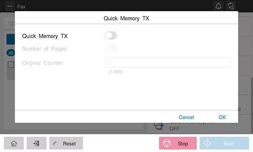 If you want to show the total number of pages in the Number of Pages column of sender information, set [Specify the Number of Originals] to ON, and enter the total number of pages of the original in [Number of Originals]. With this information, the destination can see the remaining number of pages to be received.