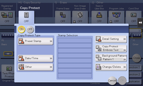 [Copy Protect Type] | Select a stamp used. The date and time can also be printed.