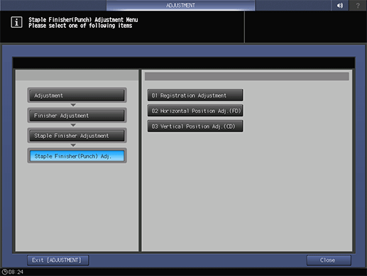 The screen returns to the Staple Finisher(Punch) Adjustment Menu screen.
