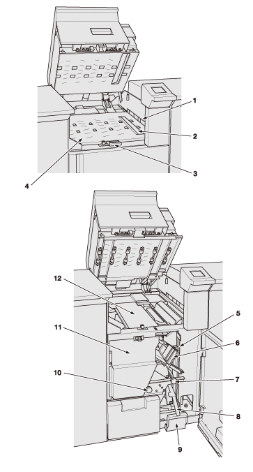 4 | Booklet tray | Holds ring-bound booklets. Withdraw the tray to take out the output booklets. |