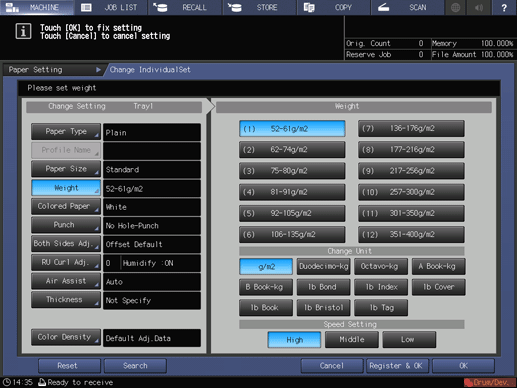 On the touch panel of the main body, press Paper Setting on the MACHINE screen.