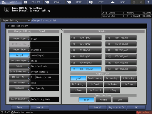 Select the tray in which the papers are loaded and press Change Set.