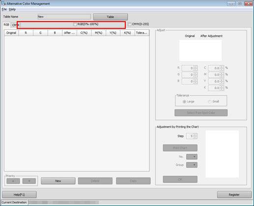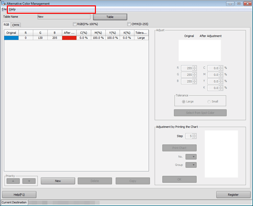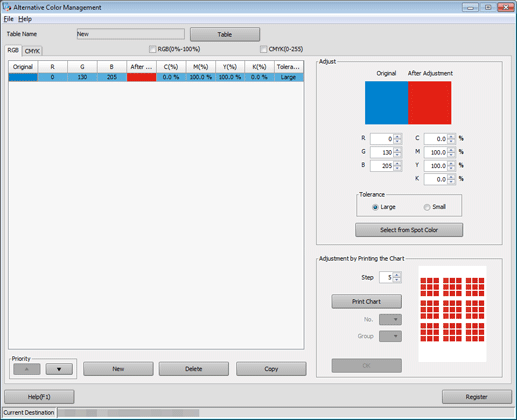 Set the color values for Original and After Adjustment under Adjust, and click Register.