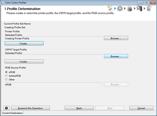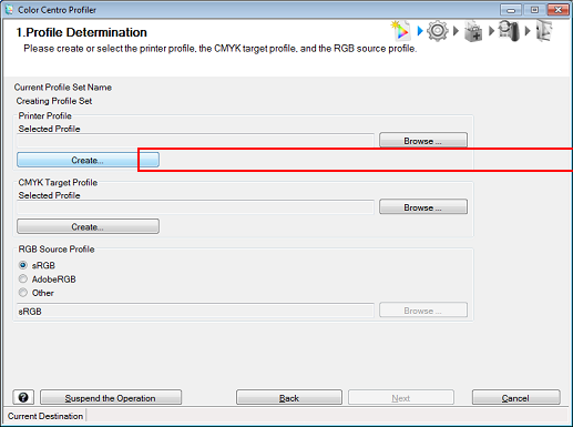 Here, the procedure for creating a new printer profile is explained.