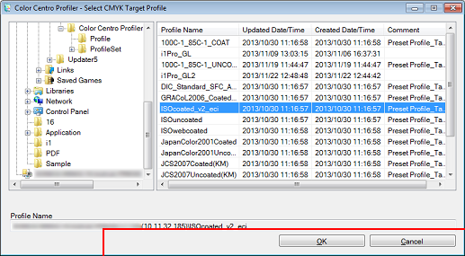 Select a folder from the left side, and then select a CMYK target profile from the list on the right side. Click OK.
