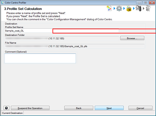 Example: "Sample_coat_GL" is entered in Profile Set Name.