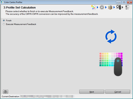 Selecting Execute Measurement Feedback enhances the accuracy of CMYK-CMYK conversion. For details, refer to Feeding Back the Measured Value.