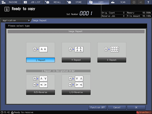 To cancel the Image Repeat function with the current setting saved, press Function OFF.