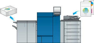 The copy function allows you to configure original, paper, image quality, and finishing settings. Scanning the original with these settings enhances copy quality and operation efficiency, enabling you to make a copy depending on the desired finishing.