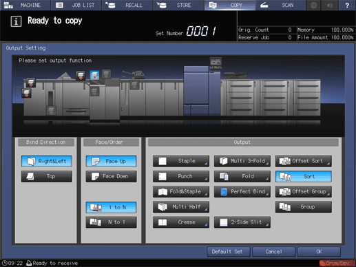 An icon representing specified function is displayed under Output Setting on the COPY screen.