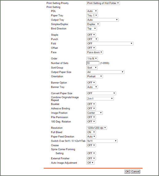 Print Setting | For details, refer to Registering Print Setting in Hot Folder. |