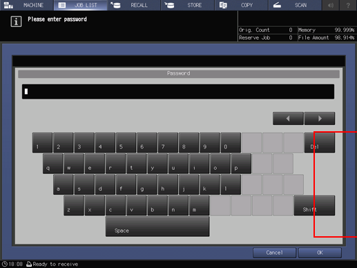 Enter the password of the selected secure box, then press OK.