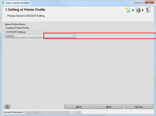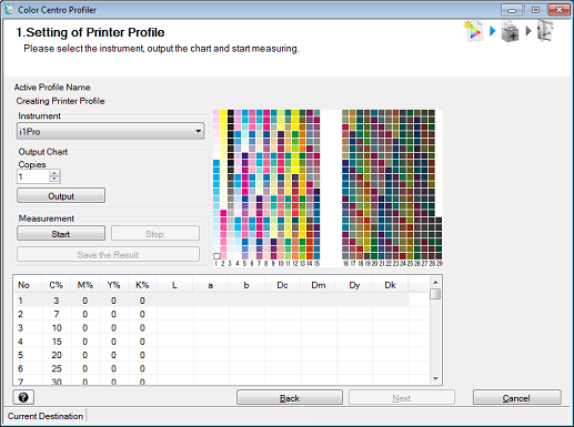 15. After you finish the chart measurement, click Next on the 1. Setting of Printer Profile screen.