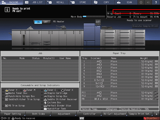 When the PM Call icon appears in the machine status indicator/right and the following message appears in the message area of the screen, contact your service representative for a periodical maintenance.