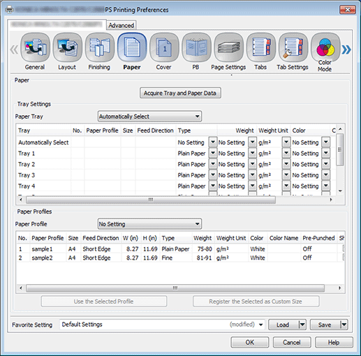 2. Click the Paper tab, and then click Acquire Tray and Paper Data.