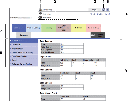 The following describes the configuration of the Administrator Mode screen.