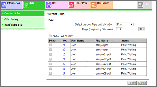 Enables you to check the output order of files copied to the hot folder, or to delete files while copying data or waiting for transfer.