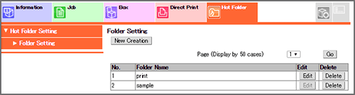Folder Setting | Enables you to create new hot folders, and edit or delete the created hot folders. |
