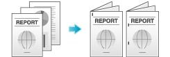By selecting [Fold] or [Center Staple and Fold] in the [Finish] tab in combination with this function, you can create booklet-form documents by folding the printed sheets in the center or by binding them using two staples in the center.