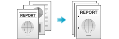 Each set of sheets can be stapled (at a corner or at two positions) and output automatically. This function is useful for preparing a project proposal or other booklet materials.
