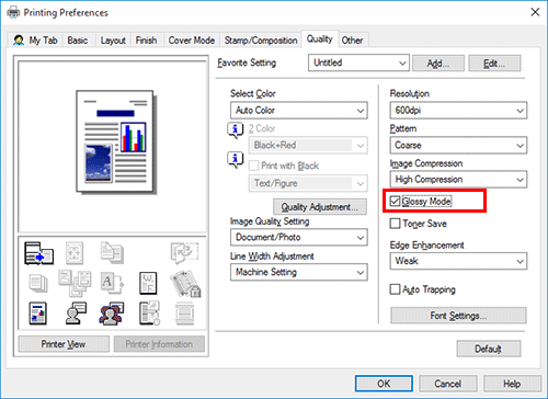 In the [Quality] tab, select the [Glossy Mode] check box.